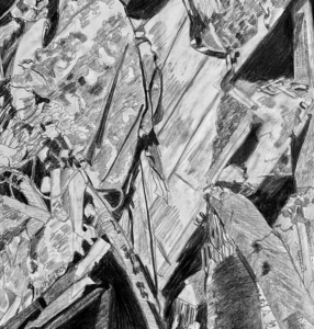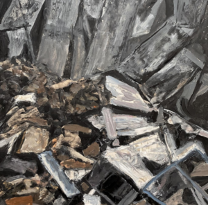 “Karşılaşmalar” başlığı, bir eserin bağımsız bir deneyim alanı olarak ele alınmasına işaret ederken bu yaklaşım, izleyicinin her resimle ayrı bir ilişki kurmasına olanak tanıyor. Parçalanmış mekânlar, çökmüş hacimler ve yerinden edilmiş yapılar gibi görsel unsurlar, eserlerde sabit bir yer ve zaman algısı oluşturmak yerine, farklı durumların kesişimini yansıtıyor. Başarır’ın eserleri yalnızca “şimdi”yi değil, tekrar eden karşılaşmalar üzerinden zamanı da görünür kılıyor. Böylece sergi, bireysel ve toplumsal hafızaya dair izler taşıyan bir anlatım dili kuruyor. Resimlerin isimsiz olması ise eserleri belirli bir bağlamla sınırlamayarak izleyicinin yorum alanını genişletiyor.