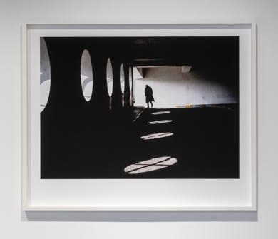 İstanbul, 2023 tarihli üçüncü fotoğraf, derin gölgelerle yarılmış bir geçitte ilerleyen tek bir figürü gösteriyor. Dairesel ışık lekelerinin ritmik dizilimi hem soyut bir grafik düzen hem de insanın geçiciliğini vurgulayan metaforik bir yol işlevi görüyor. Bu kare, Yeraltı ve Bulantı’daki yalnız adam imgesini çağrıştırırken, Demirkubuz’un “duruş” kavramını en yalın biçimde görselleştiriyor. Bu üç fotoğraf, serginin bütünü içinde hem sinemadan fotoğrafa taşınan varoluşçu yoğunluğu hem de tekil anın sessizliğini çarpıcı biçimde bir araya getiriyor.