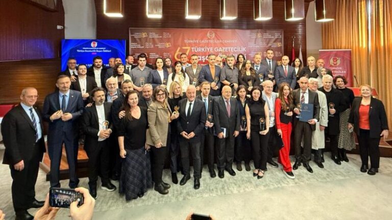 Türkiye Gazeteciler Cemiyeti Genel Sekreteri Sibel Güneş de ödüllere başvuruların her yıl arttığına dikkat çekerek şunları söyledi: “Tüm zorluklara rağmen meslektaşlarımız büyük emek verdikleri haberlerle ödüllerini ve övgü plaketlerini aldılar. Kamu yararına eşik bekçiliği yapan gazeteciler için 2026 yine baskılar, haksız gözaltı ve tutukluluklarla başladı. Türkiye Cumhuriyeti demokratik bir toplumsa, kamuoyunu ilgilendiren tüm olaylar hakkında, halkı objektif ve gerçekleri yansıtacak biçimde aydınlatmanın basının varlık nedeni olduğu bilinmelidir. Halkı olumsuz etkileyen, kamu yararını zedeleyen sorunlarla ilgili olarak iktidarı ve yöneticileri eleştirmek, uyarmak, bu varlık nedeninin olmazsa olmazıdır. Basın ve düşünceyi ifade özgürlüğü sadece lehte olan, haberler, fikirler için değil, aynı zamanda muhalif olan, çarpıcı gelen, rahatsız eden haberler ve fikirler için de uygulanır. Ancak ülkemizde sadece haber yaptığı için meslektaşlarımız tutuklanıyor. Son dönemde üyelerimiz Merdan Yanardağ, Bilal Özcan, İsmail Arı ile Alican Uludağ tutuklandı. Cezaevindeki meslektaşlarımızın özgür kalmasını talep ediyoruz. Törenimizden cezaevindeki 15 tutuklu meslektaşımıza selamlarımızı gönderiyoruz.”